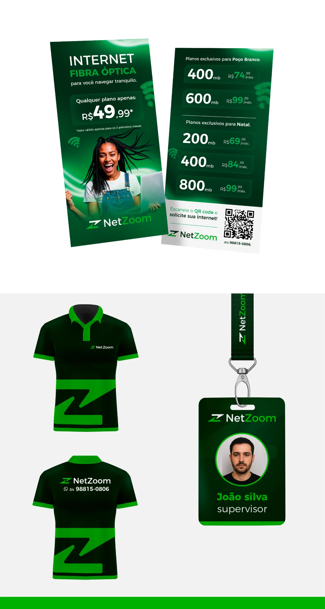 Criamos uma identidade visual que traduz velocidade, confiança e qualidade.Uma marca moderna, forte e memorável, que reflete o dinamismo da NetZoom.